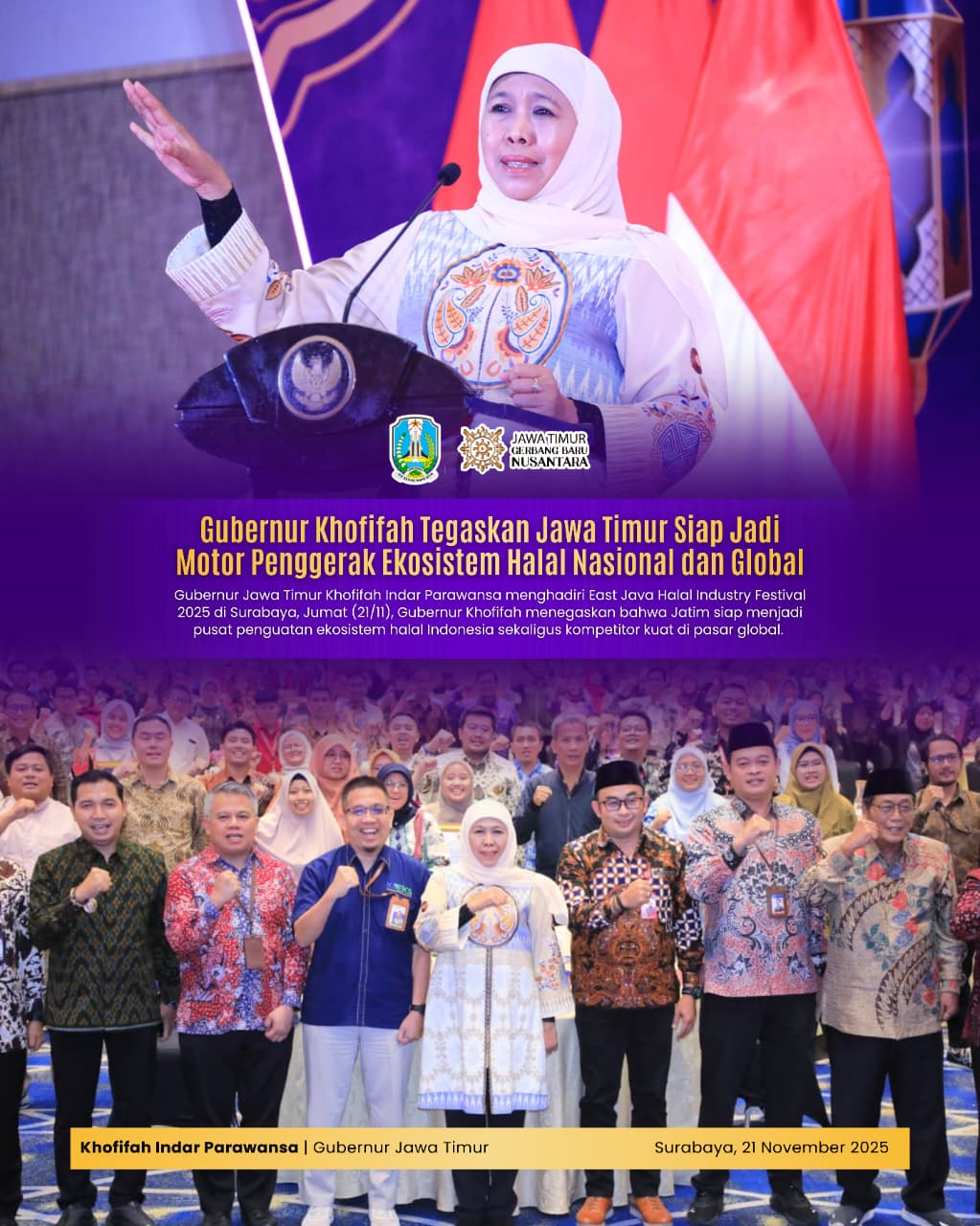 Pada kesempatan ini, Gubernur Khofifah menegaskan optimisme bahwa Jawa Timur siap menjadi motor penggerak ekosistem dan industri halal nasional bahkan global.