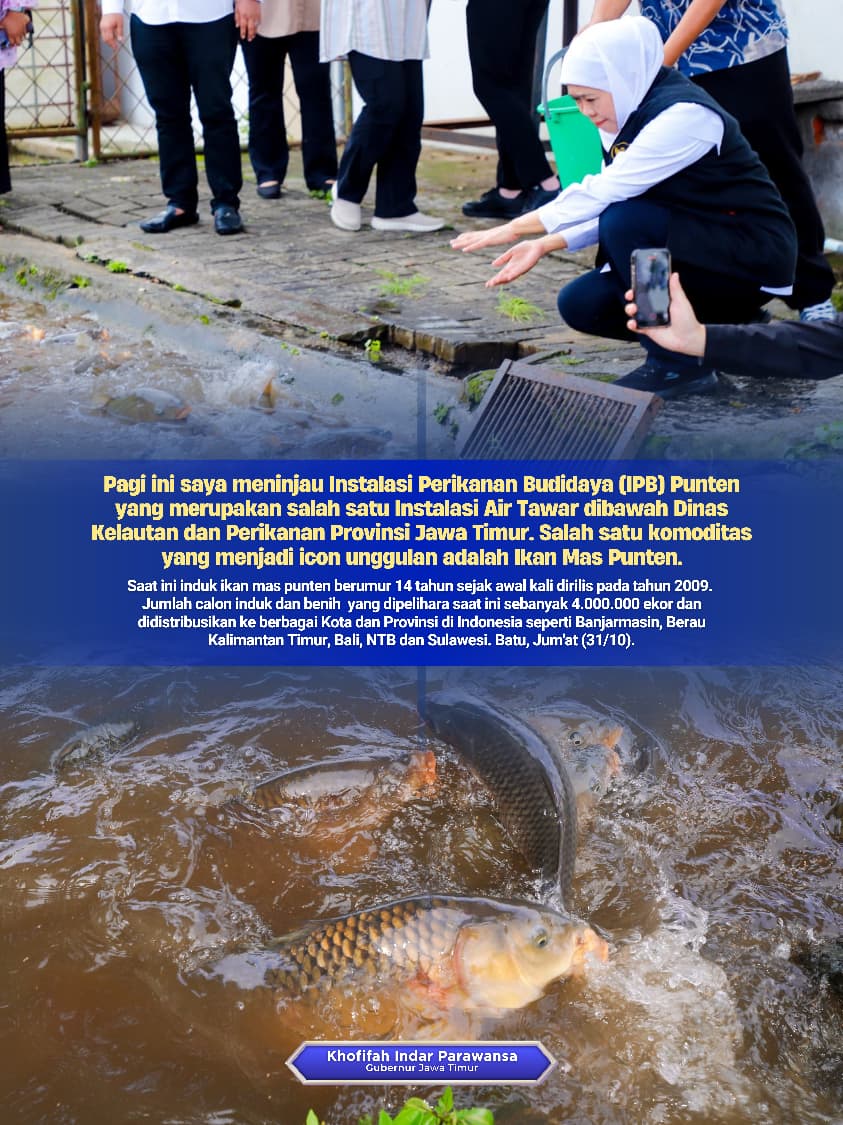 Budidaya Ikan Mas Punten ini akan dikembangkan oleh Pemprov Jatim. Sebab, menurut Khofifah, ikan ini asli Kota Batu Jatim dan cukup besar marketnya.