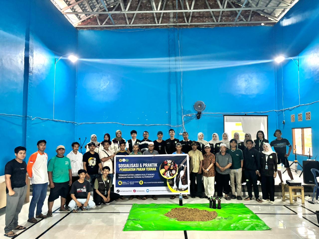 Harian Cakrawala – Bebidas, Wanasaba, Mahasiswa Kuliah Kerja Nyata (KKN) Universitas Mataram periode Desember 2025 hingga Februari 2026 yang bertugas di Desa Bebidas, Kecamatan Wanasaba, Kabupaten Lombok Timur, melaksanakan kegiatan sosialisasi dan praktik pembuatan pakan ternak dari limbah kulit kakao pada Jumat, 17 Januari 2026. Kegiatan ini dilaksanakan di Aula Kantor Desa Bebidas dan menjadi salah satu program kerja unggulan yang berfokus pada pemanfaatan potensi lokal desa serta pemberdayaan masyarakat di sektor pertanian dan peternakan.