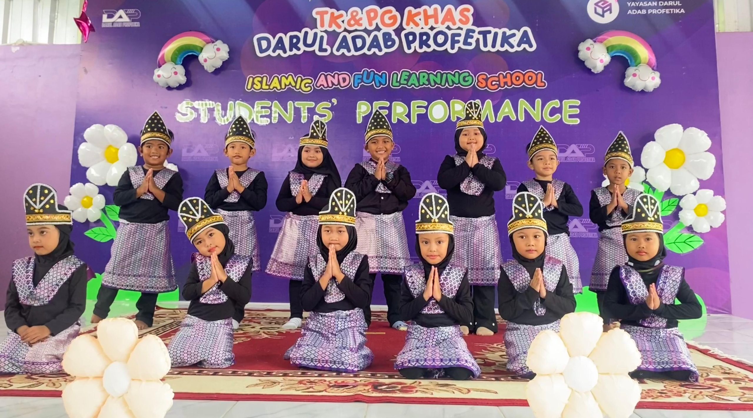 Kegiatan Students’ Performance ini merupakan bagian dari implementasi nilai keunggulan TK KHAS Darul Adab Profetika, yaitu pendidikan yang berlandaskan nilai-nilai Islami, penguatan karakter (adab), pembelajaran aktif, serta pengembangan potensi anak secara holistik. Setiap penampilan dirancang tidak hanya sebagai hiburan, tetapi juga sebagai proses pembelajaran bermakna yang menumbuhkan kemandirian, kerja sama, dan rasa percaya diri anak.
