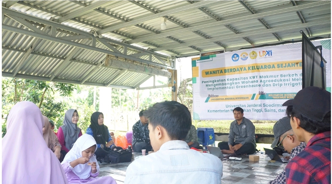 Harian cakrawala – Tim pengabdian kepada masyarakat dari Universitas Jenderal Soedirman (UNSOED) melaksanakan kegiatan pelatihan budidaya melon dengan teknologi greenhouse dan drip irrigation yang ditujukan bagi Kelompok Wanita Tani (KWT) Makmur Berkah, Desa Kutasari, Kecamatan Baturraden, Kabupaten Banyumas. Kegiatan yang dilaksanakan pada tanggal 1 Oktober 2025 ini dipimpin oleh Sunendar, SP, M.Sc selaku ketua tim pengabdian dengan anggota M. Solekan, SP, M.P., dan Exwan Andriyan Verrysaputro, S.Pd, M.Pd.