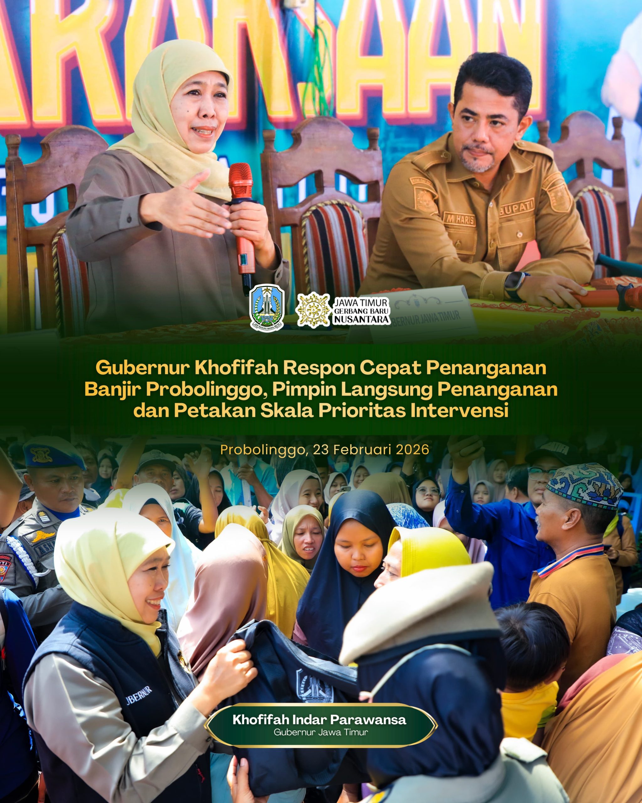 Gubernur Khofifah mengatakan, Pemprov Jatim bergerak cepat bersama seluruh jajaran Pemkab Probolinggo untuk memastikan keselamatan warga serta percepatan penanganan pasca banjir.