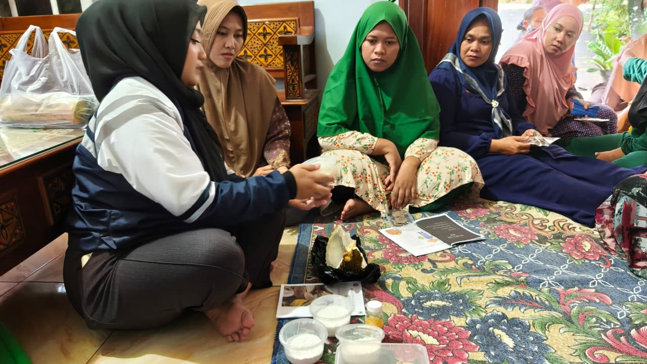 Hal ini ditambahkan oleh Rina Muryani, S.Pt., M.Si., selaku dosen pendamping lapangan bahwa pemanfaatan kulit durian sebagai bahan baku kerupuk merupakan inovasi berbasis konsep zero waste yang bertujuan mengurangi limbah organik sekaligus menghasilkan produk pangan bernilai ekonomi. Kulit durian yang selama ini dianggap sebagai sampah diolah melalui proses pembersihan, perebusan, penghalusan, dan pencampuran dengan bahan pendukung seperti tepung tapioka dan bumbu, kemudian dikeringkan dan digoreng menjadi kerupuk. Proses pengolahan ini tidak hanya mengurangi volume limbah kulit durian, tetapi juga memanfaatkan kandungan serat kasar yang cukup tinggi sebagai nilai tambah produk pangan alternatif.